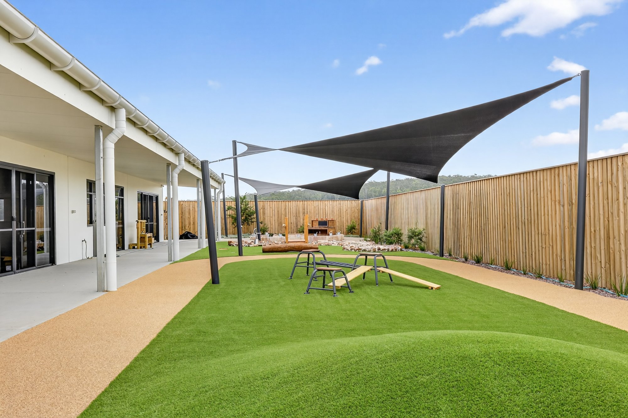 The photography documents a brand-new purpose-built early learning centre within Warner Business Park, one of the Central Coast’s emerging commercial and residential growth corridors.